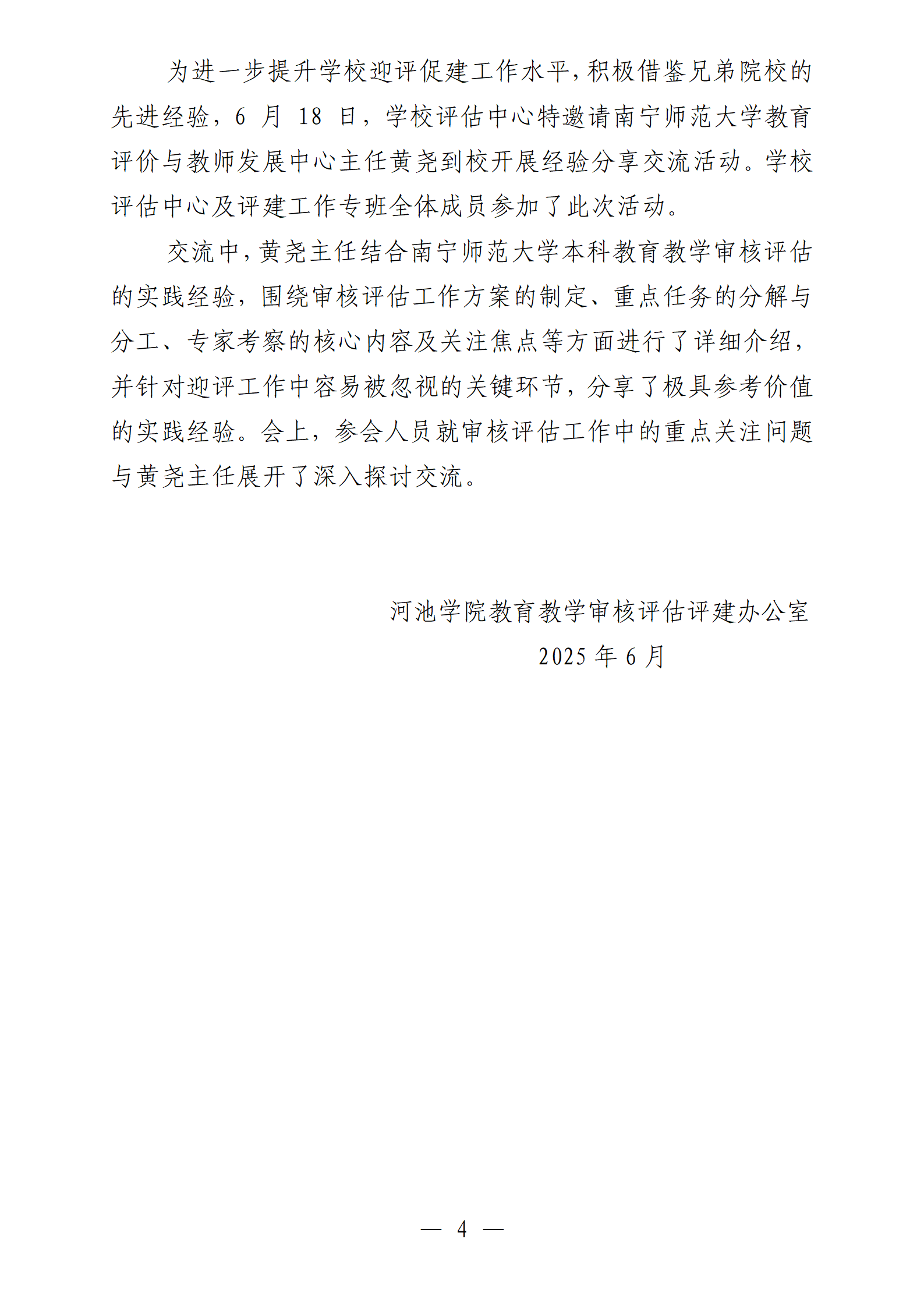 河池学院本科教育教学审核评估专项工作简报第四期